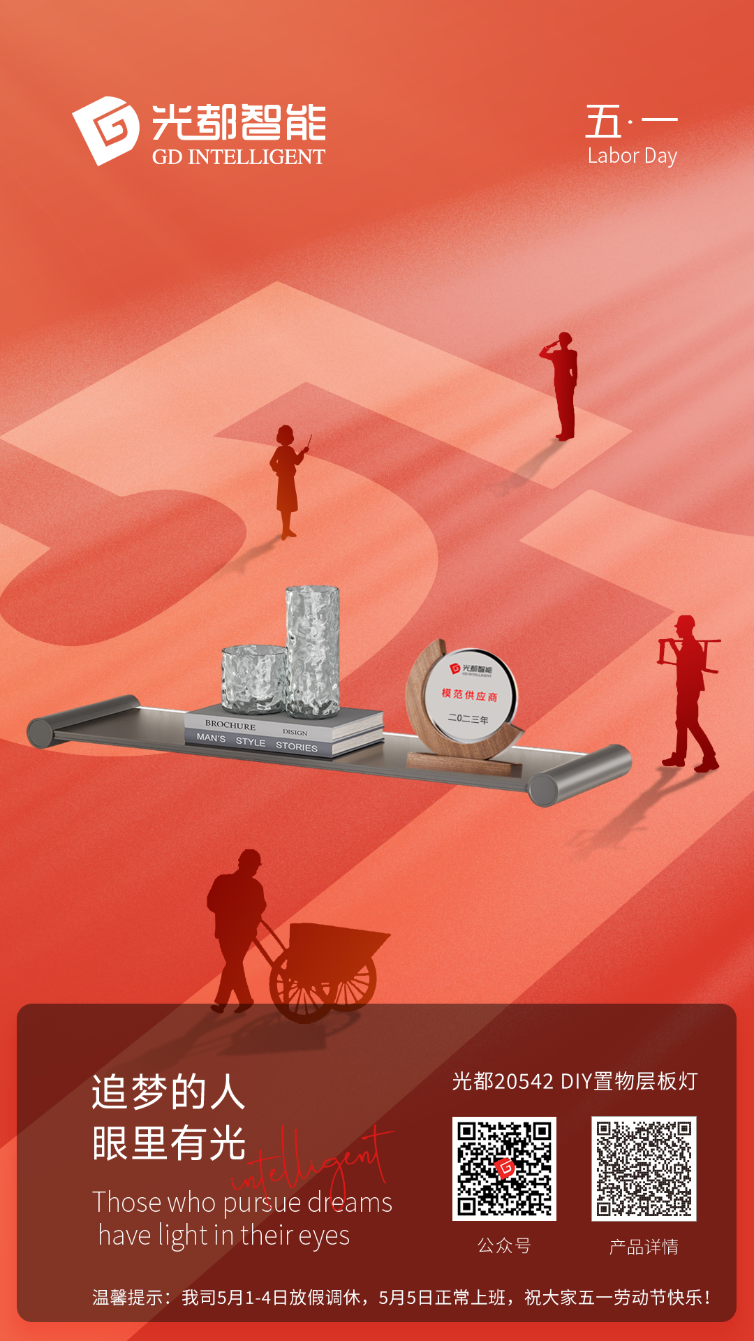 光都5月1-4日放假調休,2024年5月5日正常上班,光都照明攜光都智能和光都光電全體同仁祝新老伙伴朋友家人們五一勞動節快樂!