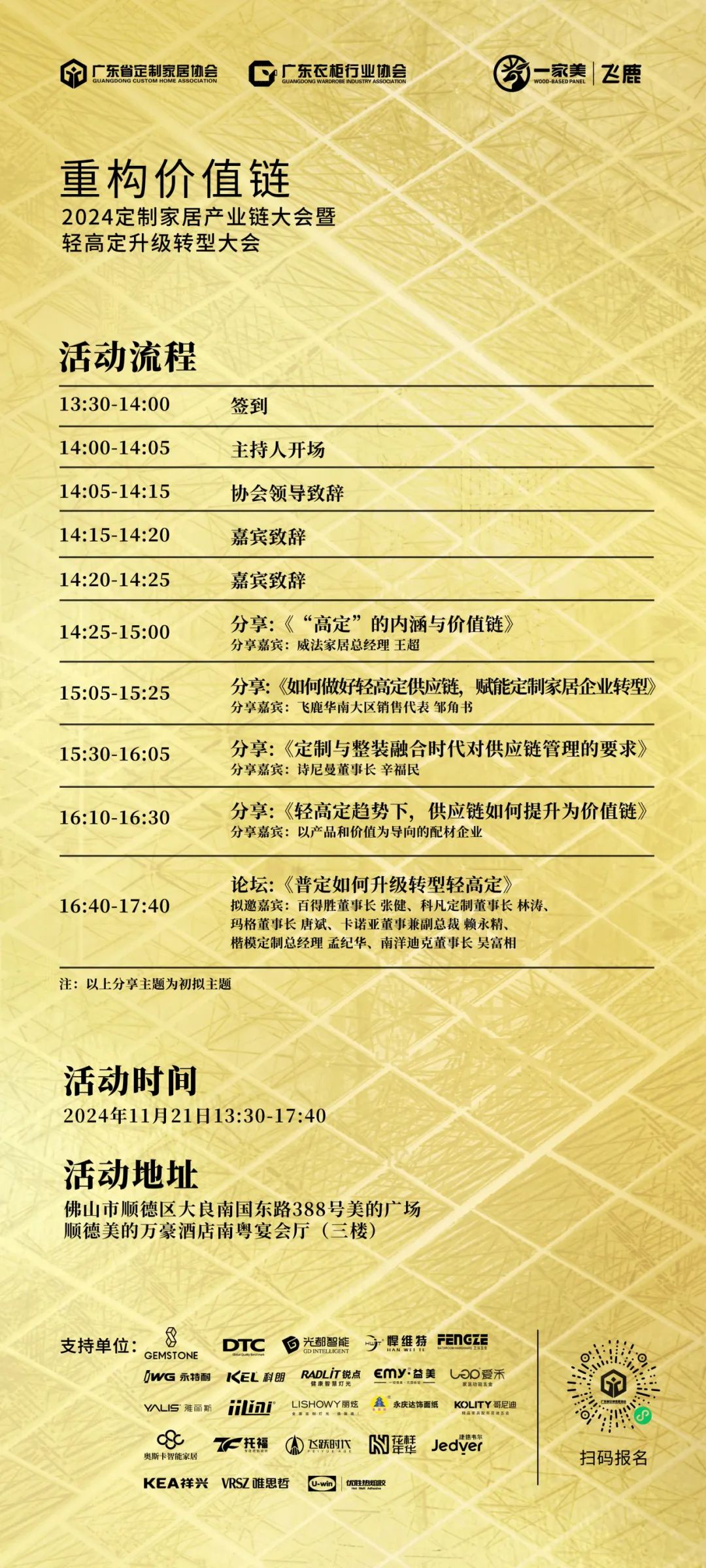 11月21日,聚焦定制家居產業“價值鏈”的構建與優化,攜手開啟定制家居行業高質量發展新篇章。相聚佛山,不見不散!